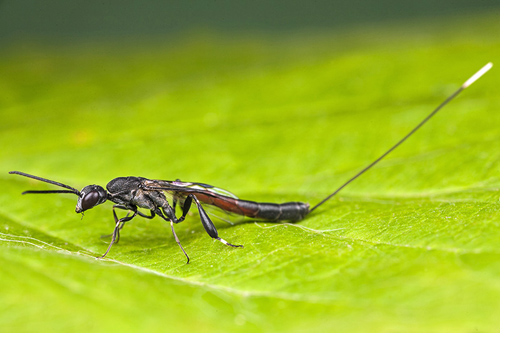 Gasteruption jaculator is a cleptoparasite (it "steals" the nest), of various other species of solitary bees and wasps. When "investigating" my house wall, they are looking for the nest burrows of potential host bees/wasps. If they find one, they use their long ovipositor to deposit an egg into the brood chamber. When the egg hatches; the larva eats the host egg/larva and the pollen/nectar food store collected by the host bee. This behaviour is not uncommon amongst our bees and wasps. Indeed; of the 200+ species of solitary bee in the UK, well over a quarter are parasites of other bees!
