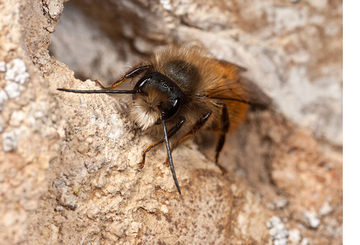 Well, I've started seeing plenty of males but I'm still waiting for females. This first male appeared on 16th April, investigating old nest holes in my house wall. The males generally emerge about two weeks before the females.